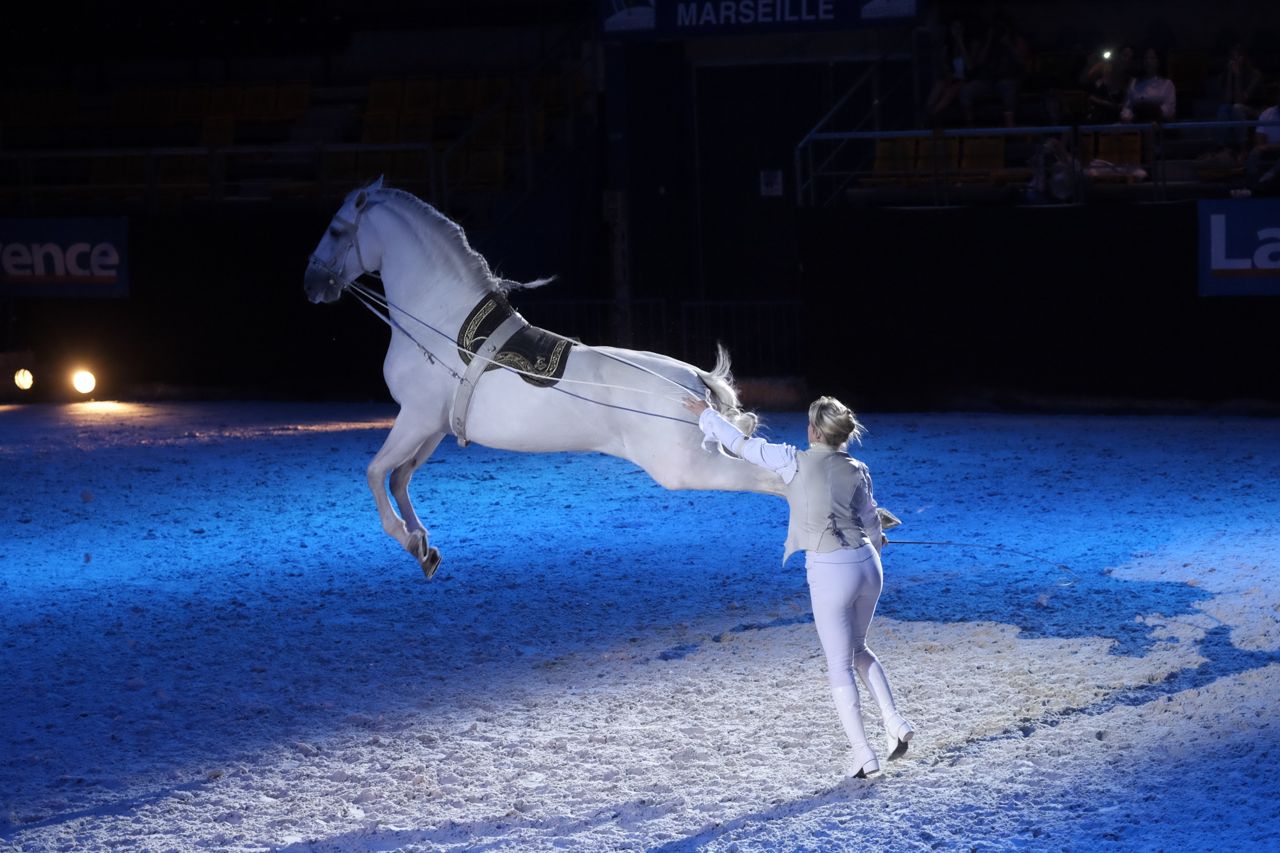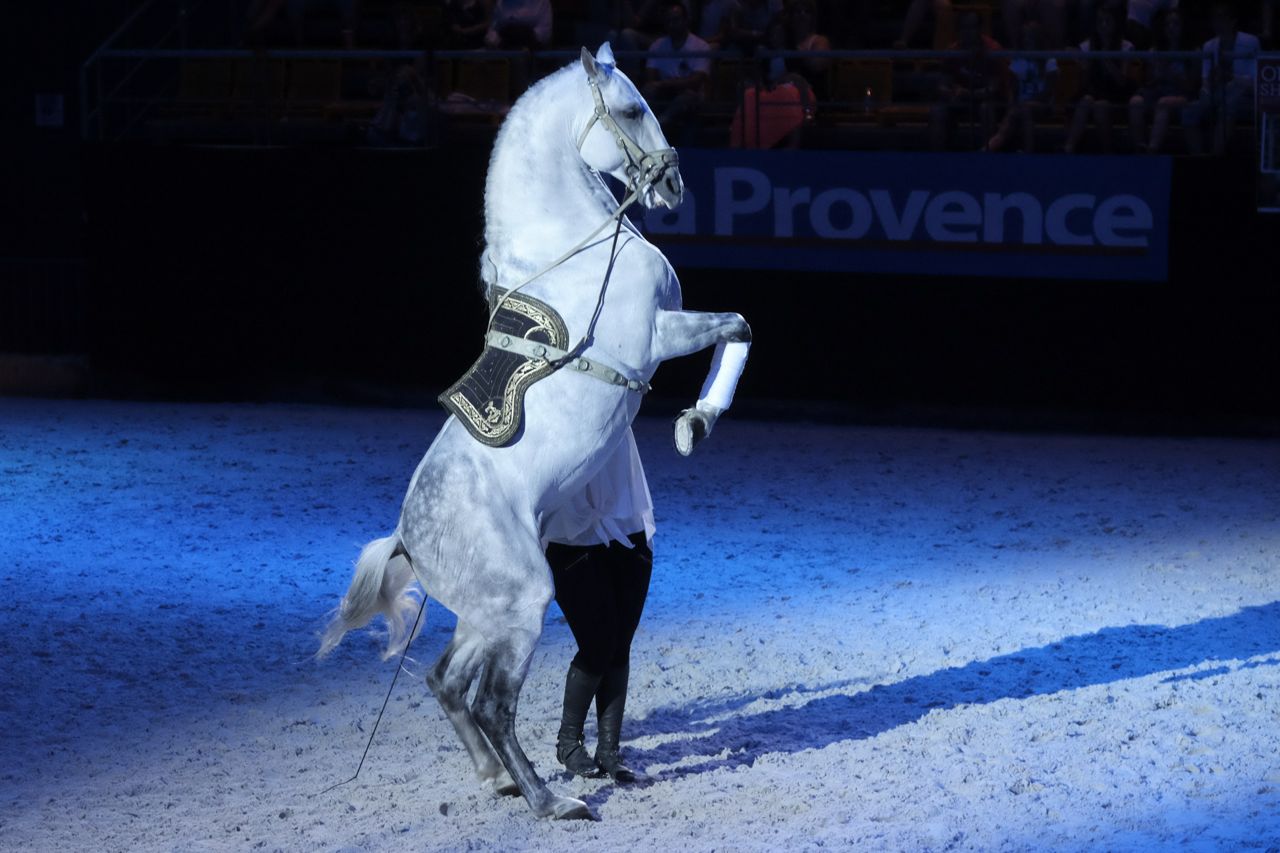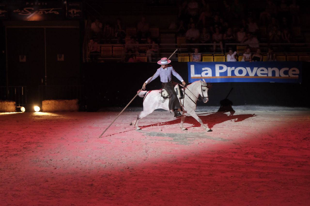The LSH has never liked performing animals, so I was surprised when he gave me two tickets to a Spectacle Equestre for our recent anniversary. Apparently there was a new Salon de Cheval taking place in Marseille, with a Gala performance in the evenings. Cool! Trade stands, general horse stuff – I could spend the whole afternoon there working hard on not spending any money! I offered to take someone else along with me but no, he gritted his teeth and resolutely said he would accompany me. Fair play to him.