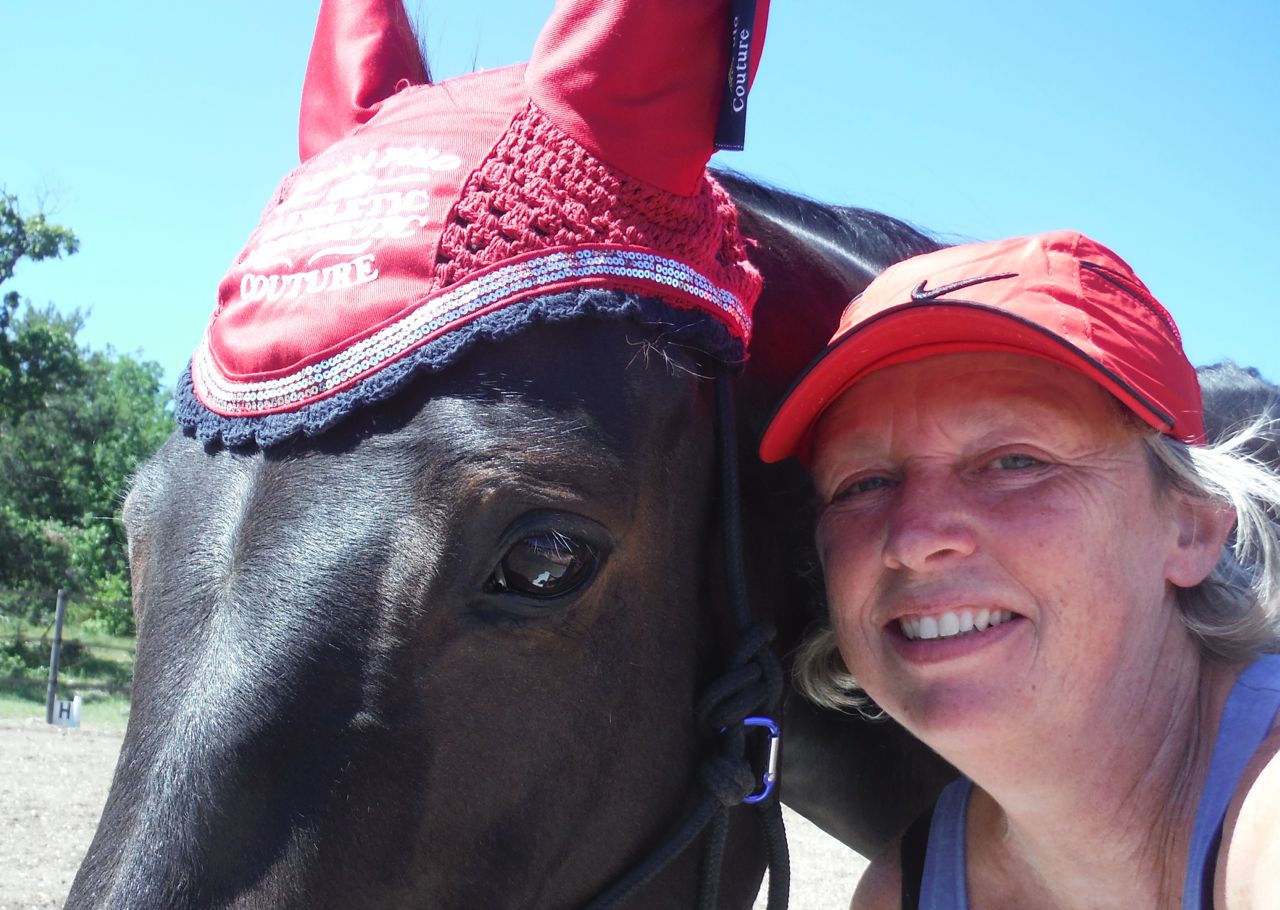 On Friday evening and Saturday afternoon, we all pitched in and set up the course for Sunday. This also meant that we had a sneaky chance to try things out with our equines – that’s what I call a Home Advantage! On Saturday, I also did a ‘dress rehearsal’ with the matching headgear I had bought for Aero and me. This is our Championnats de France gear :