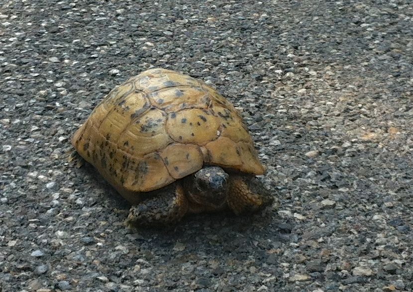 They, however, had picked him up and put him in their jeep, thinking that he was probably a lost pet. Surprising how many of the locals don’t know that tortoises are native to the region. Hermann’s Tortoise, to be precise.
