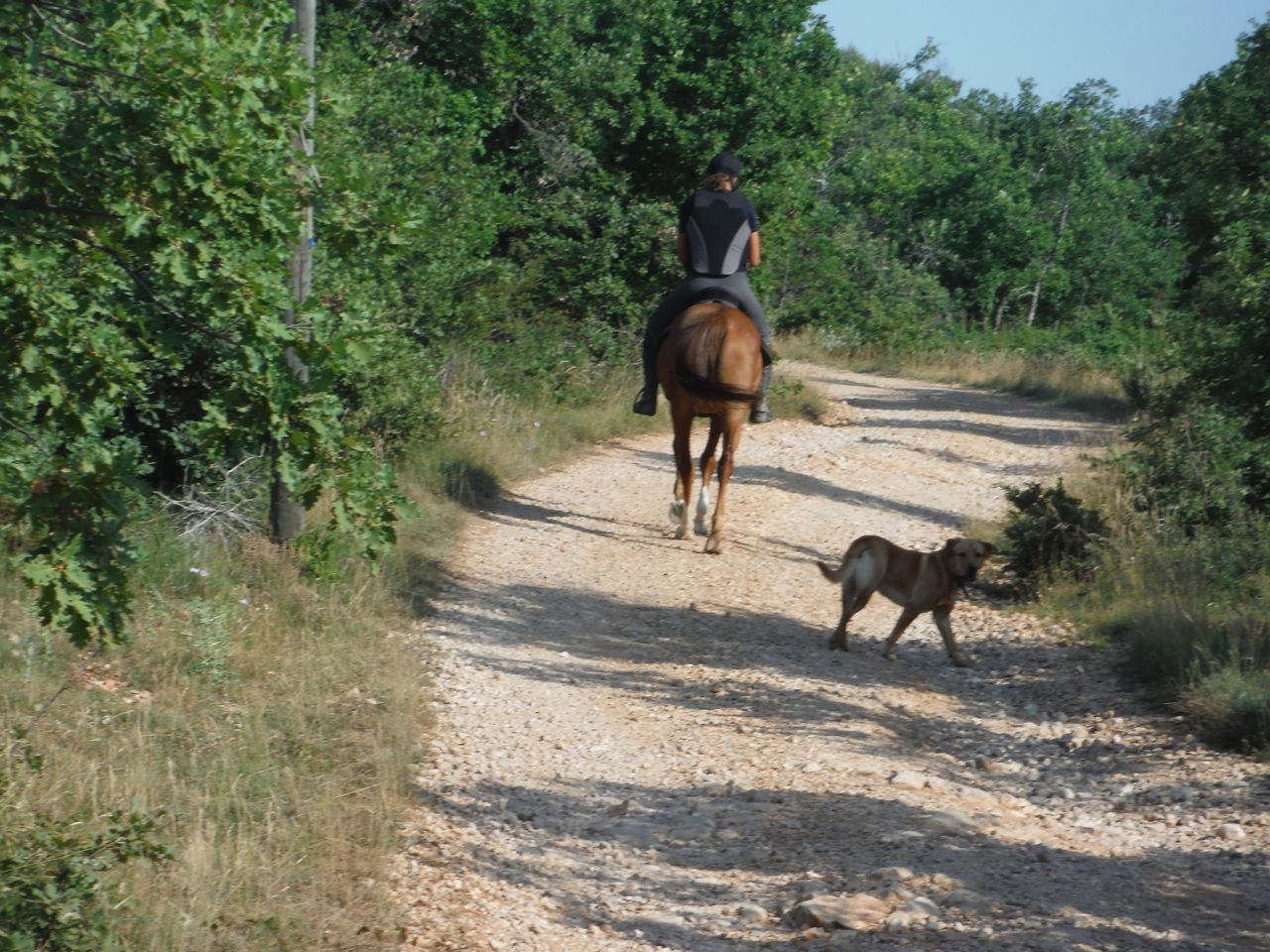 The breakthrough came around very slowly. There were no miracles, no shortcuts, just constant repetition of desensitisation exercises and consistent handling. Finally, it was time to think about riding her, but Alexandrine was very wary as she works alone. A huge part of her method relies on the horse learning to look to her for direction when something unexpected happens, and this is difficult if she is the ‘something unexpected’ on the horse’s back! She tried using Roger, the giant teddy bear, but that did not go well. Then Mr Endurance kindly volunteered to be the Crash Test Dummy first to back Auzzi. And it went really well. So well, that five days later, Flurry and I escorted her on her first trek. We were meant to be there as the lead horse, but she didn’t need us – she seems to be a brave and confident trail horse, which is good because her owners run a trekking centre!