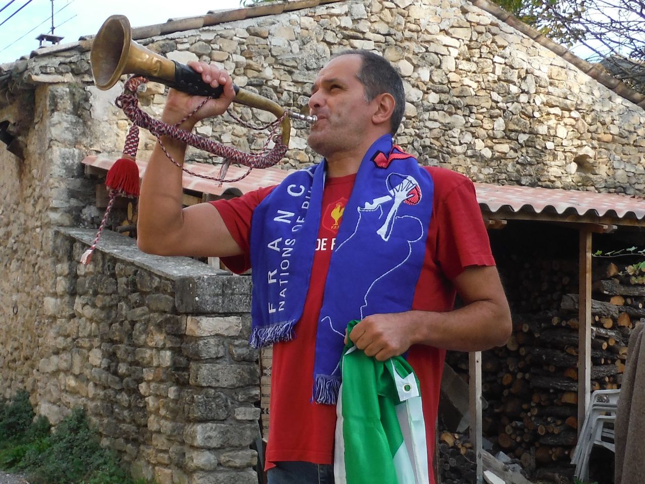 We had been invited to watch the game with Eric, one of the LSH’s rugby-loving friends, in his village. The whole village would be there, he said. We would be adding some exotic colour (mostly green) to the affair 😉