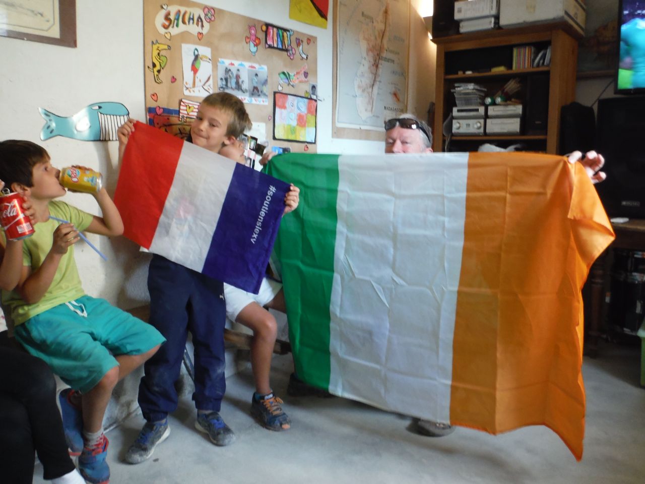 The villagers of St Pierre were no exception. One and all, they greeted us warmly. Many of them spoke excellent English, and relished an opportunity to practise. We helped ourselves to drinks from the fridge and everyone settled down to watch the game. Cake and saucisson were passed around and I immediately regretted not bringing the round of Clonakilty black pudding that’s sitting in our freezer. Next time…