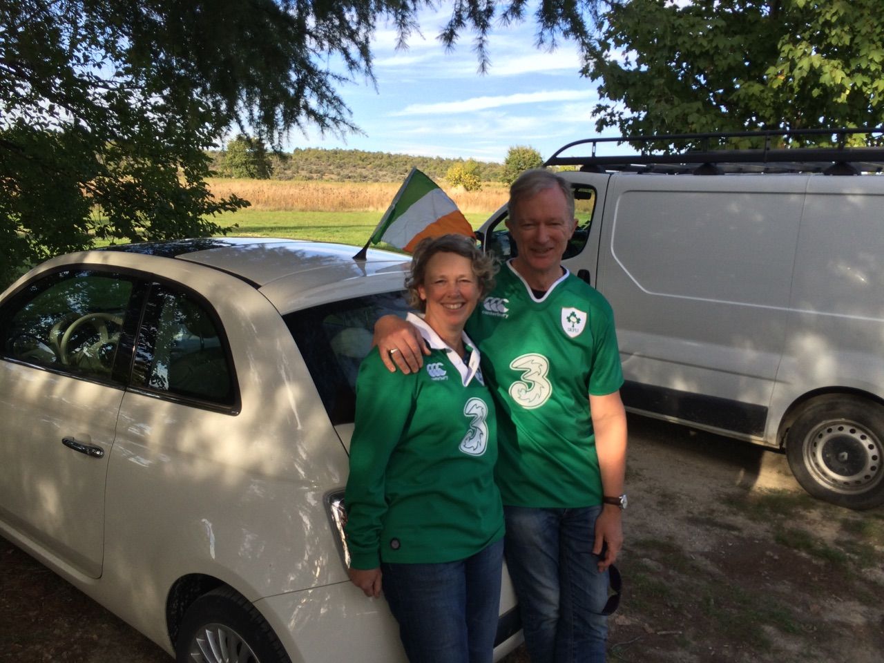 At the end of the game, Ireland were clear winners with a score of 24 against France’s 9. Our hosts were gracious in defeat, but I’m sorry to say we weren’t gracious in victory. We set off for home waving the flag out the window of the Fiat 500 and tooting the horn as we drove down the narrow street.