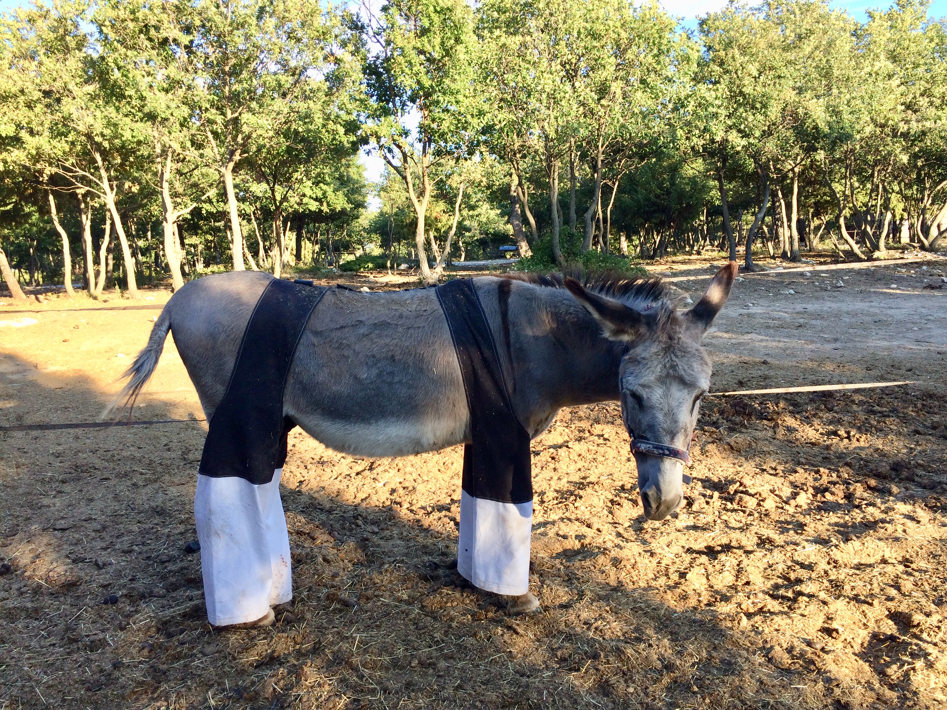 Finally, to cheer up this otherwise rather gloomy post, here’s a picture of Albert the donkey wearing trousers.