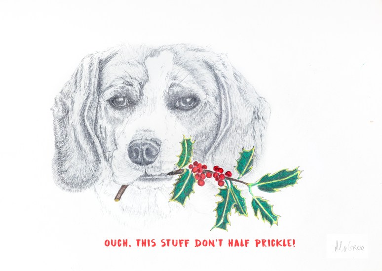 Between visitors, horse work, Villa Amande work and life in general, it’s been hard to settle down to finish off the doggie Christmas card series, but I’m finally there.