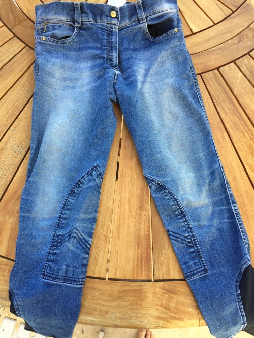(I wear half-chaps to stop hay and straw going inside my boots, that’s why all the dirt is concentrated on the thighs.)