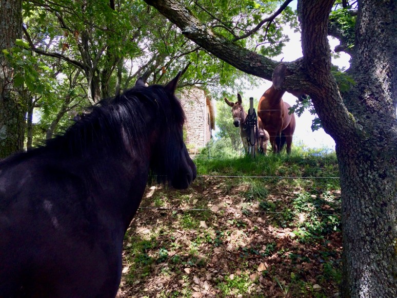 You see, my friend wants to give back to the world of equines. She learned to ride as a child and progressed through the levels of equitation the ‘normal’ way, enjoying her sport and competing regularly with various horses throughout her life. Then she achieved HER lifelong dream of moving from the big city to rural Provence and started to look into Equitation Ethologique. Like me, she started to question everything she had ever accepted as ‘normal.’ Bits. Spurs. Hitting with a whip to encourage a better jump, or a bigger stride. Keeping horses in solitary confinement in small boxes. The way in which many riding schools will keep a horse for as long as he’s useful and then pass the duty of care onto someone else, just when he needs extra time and attention.