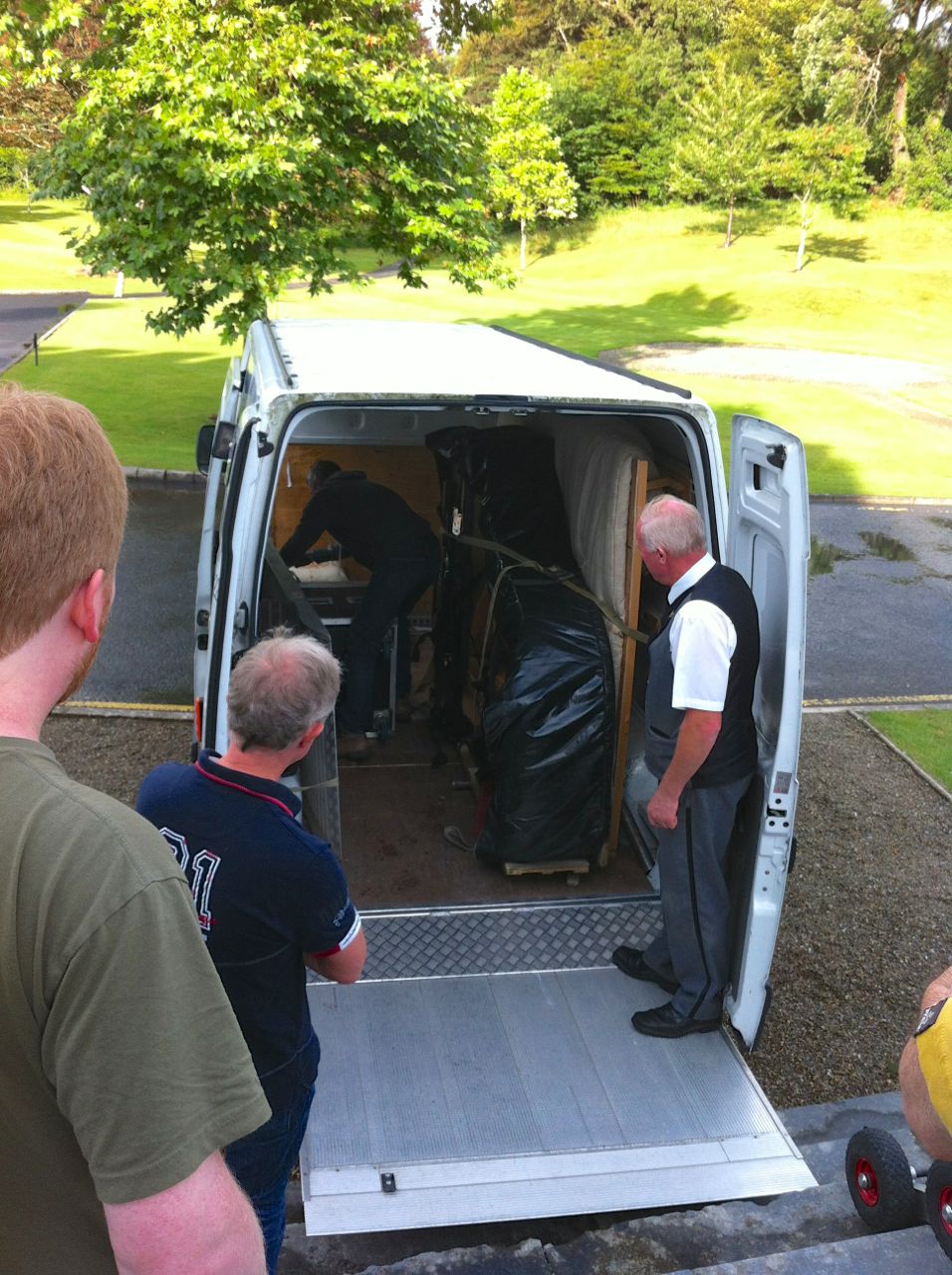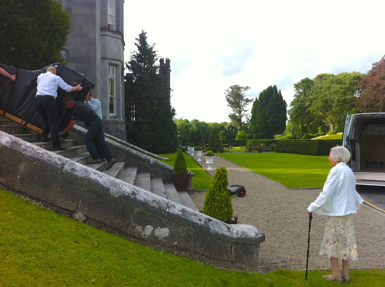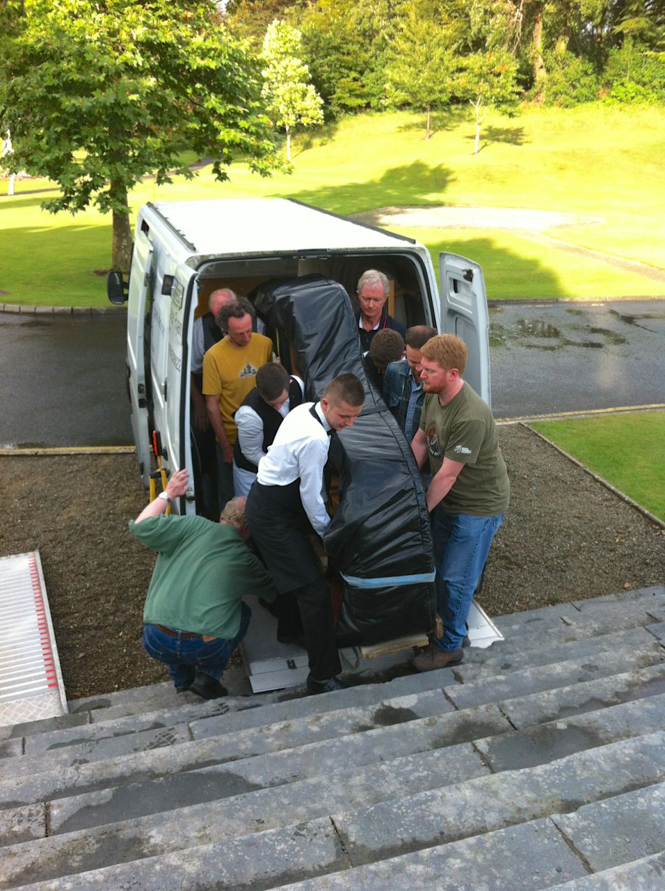 Finally, it was tucked away back in its white van. If you ever want to rent a large grand piano and need it carried up and down an indeterminate number of steps, I can heartily recommend this guy, Ciarán Ryan :
