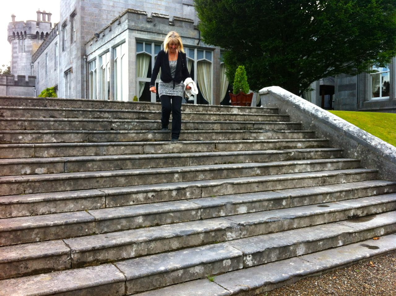 Late on Saturday afternoon, we all arrived at Dromoland to find that the ability to count is not an essential skill in the hotel management industry. This is how many steps there were :