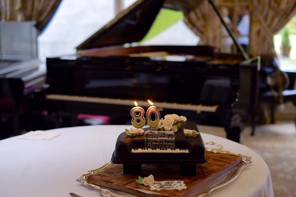 Then we decided we’d better tell Granny what was going on. Surprise parties are not a good idea for eighty year olds. She was delighted and enthusiastically set about creating a guest list. The Eldest daughter designed the invitations. A grand piano was booked. Hugh decided that he needed a bigger piano, so a different grand piano was booked. A cake was ordered from an old friend of mine who has set up a business making bespoke cakes. We were all set.